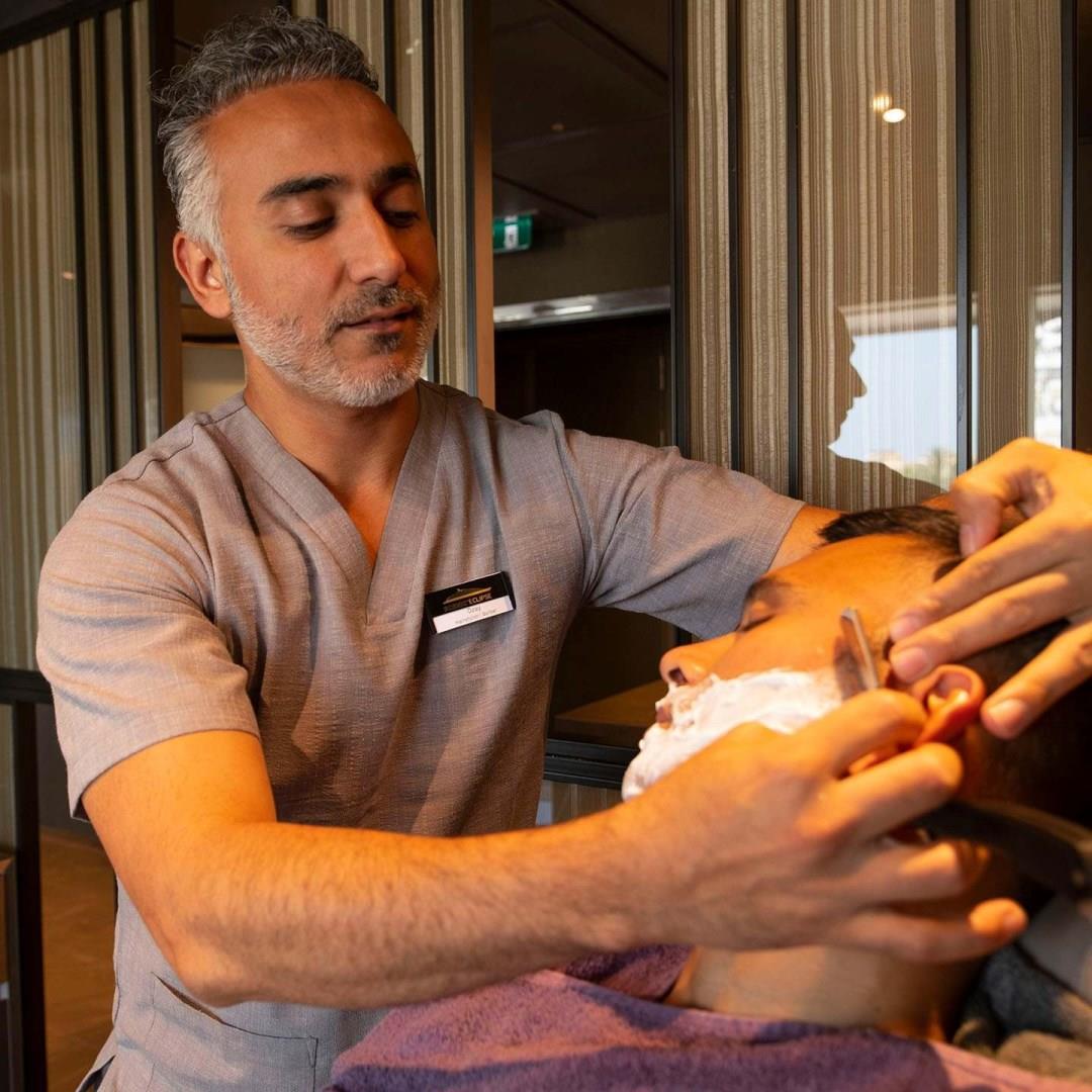 Our on board therapists provide ultra-luxury spa and hair salon treatments# to keep you looking and feeling your very best. Visit the hair salon for a treatment and style or enjoy a manicure and pedicure. Gentlemen, treat yourself to a beard-trim or shaving service.